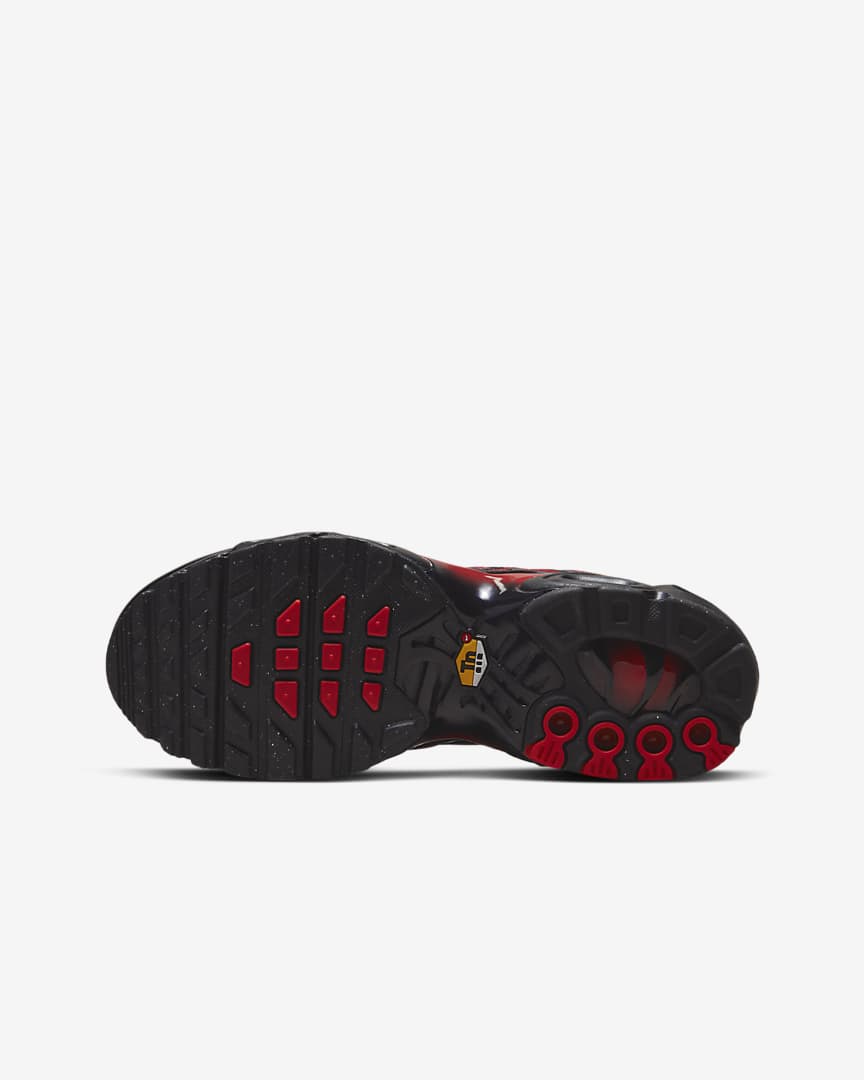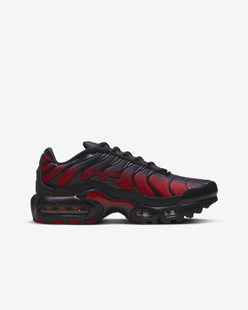 Boldly explore new places in the Nike Air Max Plus and get a taste of legendary Tuned Air technology. Air units in the forefoot and heel offer big cushioning to help you zoom around the playground in comfort. But these sneakers don’t just feel good—they look good too! With a design rooted in the original (look for a whale’s tail near the bottom), fun gradient colours make a bold statement while you play.