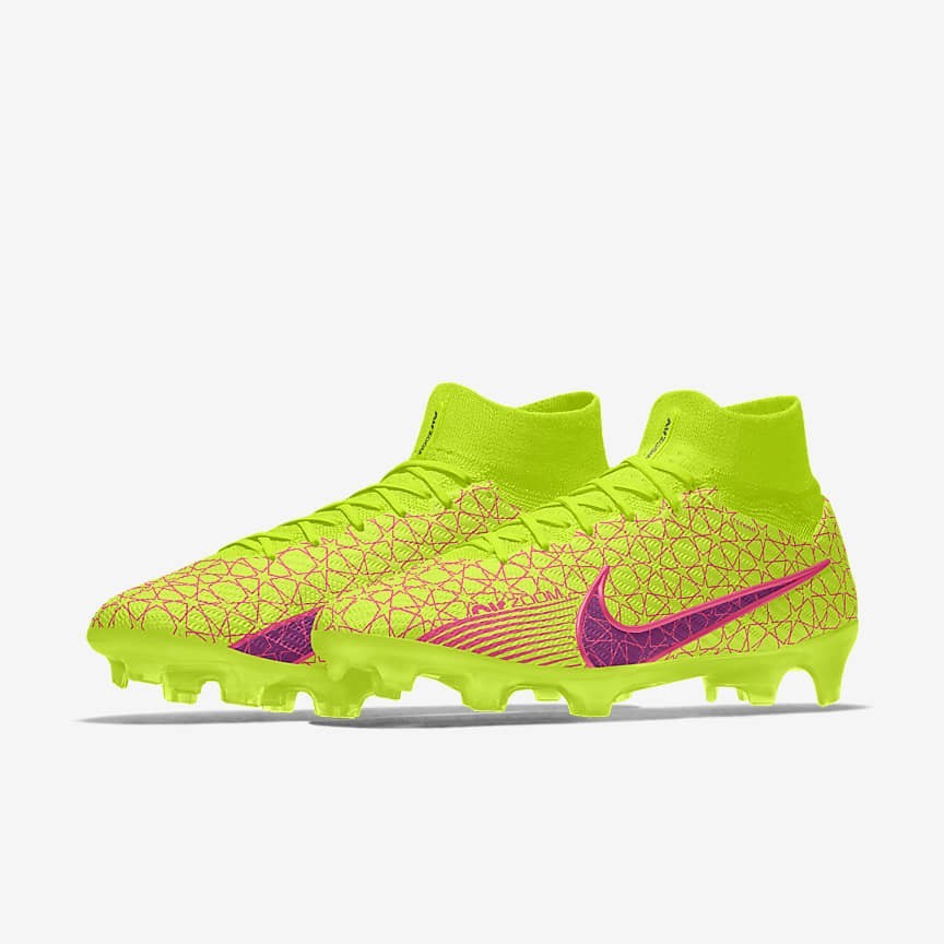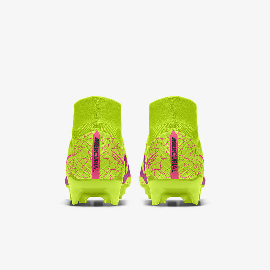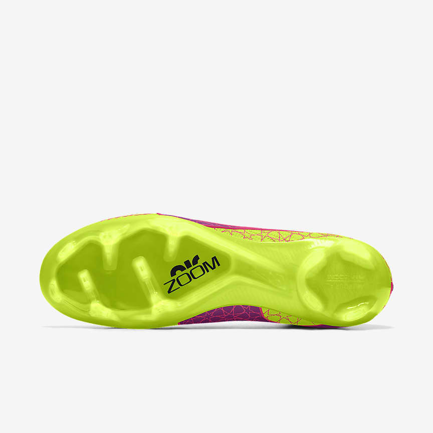Put the football world on notice with this custom Superfly 9 Elite. With special design details like flamboyant colour options, to nods to the game’s biggest global event, to personalised messages—there’s no limit to your creativity on or off the pitch. Now loaded with a Nike Air Zoom unit in the heel, you can put the pedal down in the waning minutes of a match—when it matters most. Fast is in the AIR.
